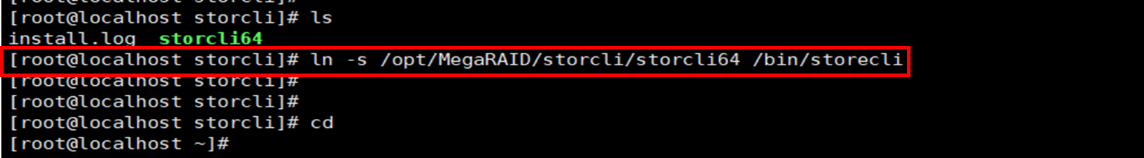 #ln -s /opt/MegaRAID/storcli/storcli64 /bin/storcli